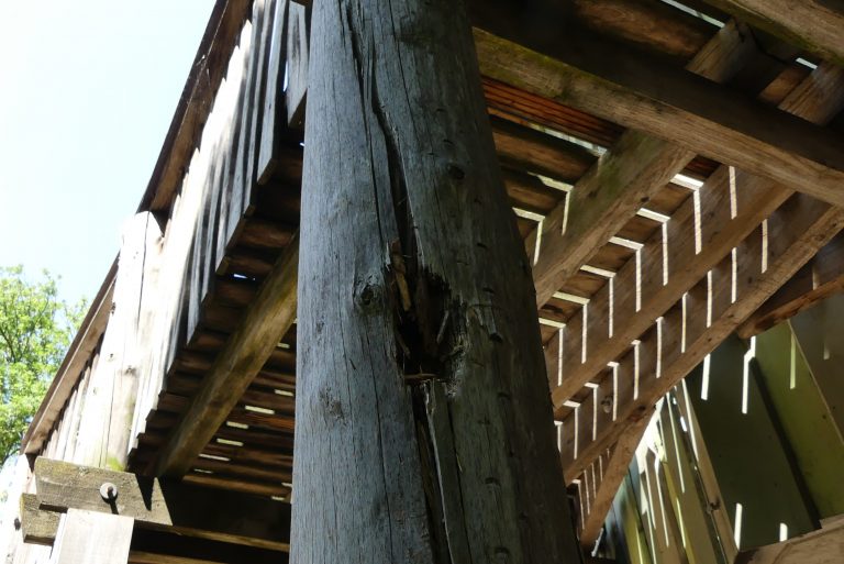 Baumhaus der Grundschule Markranstädt - Schäden an der umlaufenden Holzkonstruktion