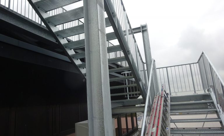 - Neubau Rettungstreppen am Flughafenverwaltungsgebäude vom 7. Obergeschoss auf Aussichtsterrasse